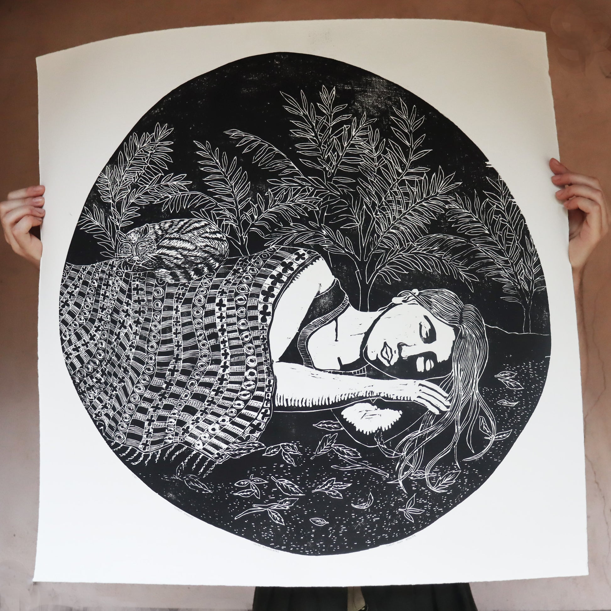 Handcarved and printed in my homestudio in Estonia on a 230gsm Hahnemuhle art paper.
